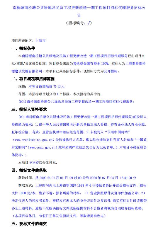 ->南橋源南橋塘公共綠地及民防工程更新改造一期工程項(xiàng)目招標(biāo)代理服務(wù)-招標(biāo)公告