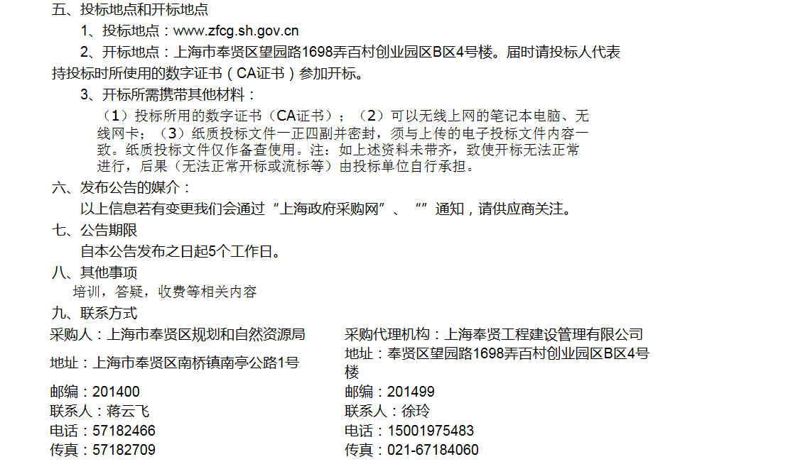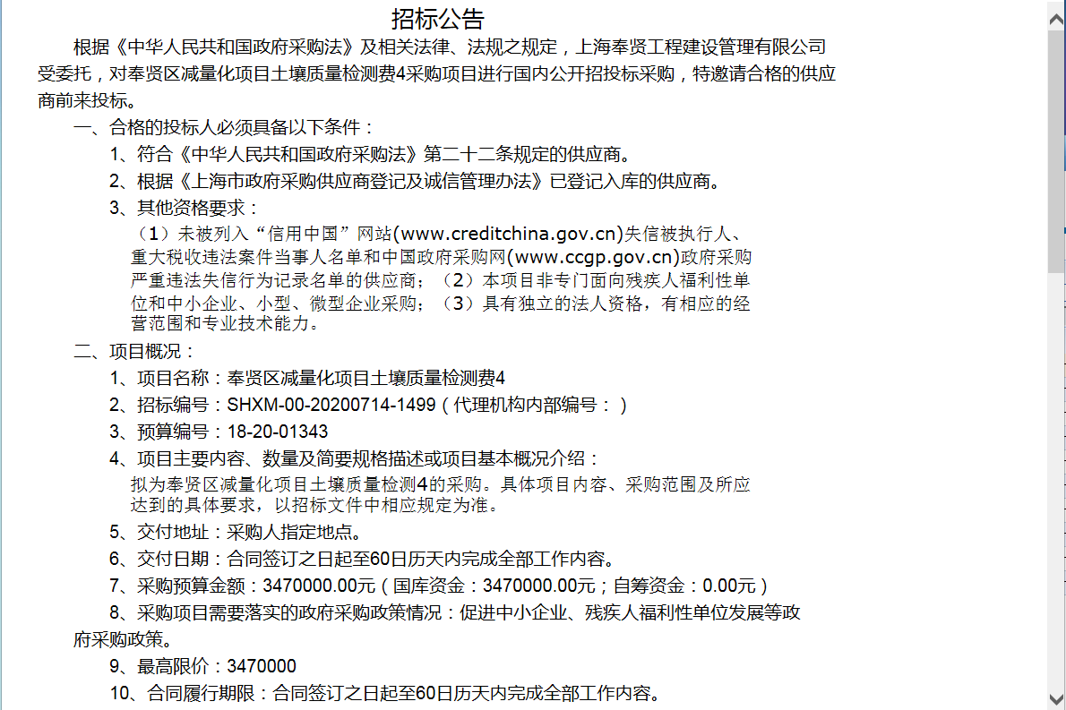 奉賢區(qū)減量化項(xiàng)目土壤質(zhì)量檢測(cè)費(fèi)4的公開招標(biāo)公告