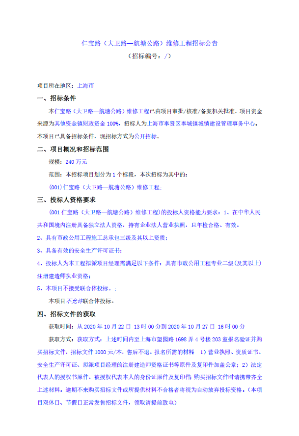 ->仁寶路(大衛(wèi)路-航塘公路)維修工程招標(biāo)公告