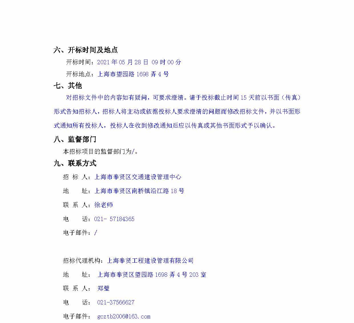 奉賢區(qū)交建中心項目招標代理服務 招標公告