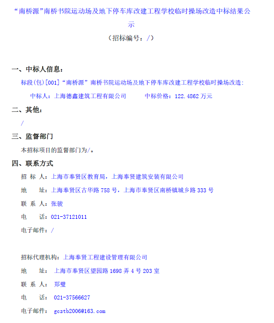 ->“南橋源”南橋書院運(yùn)動場及地下停車庫改建工程學(xué)校臨時操場改造中標(biāo)結(jié)果公示