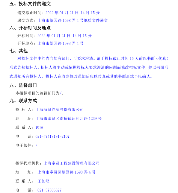海賢能源建筑工程服務供應商定點采購項目招標公告