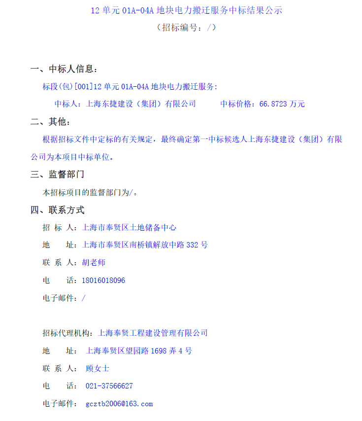 12單元01A-04A地塊電力搬遷服務(wù)中標(biāo)結(jié)果公示