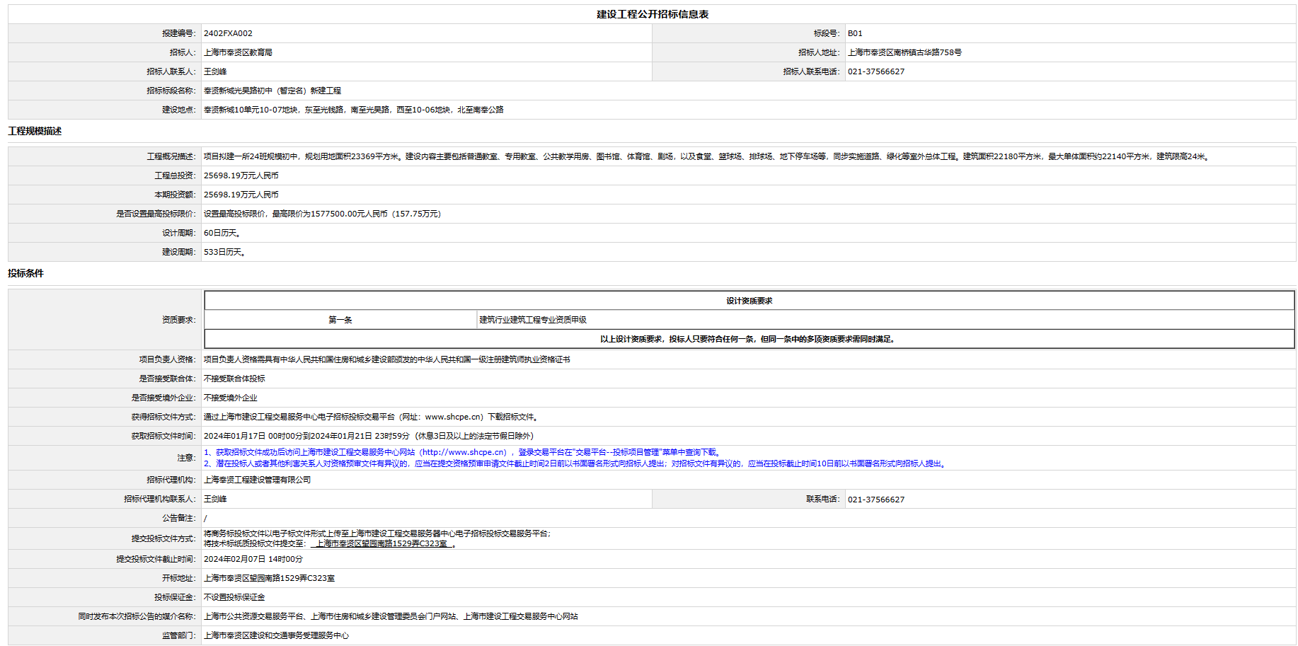 ->奉賢新城光昊路初中(暫定名)新建工程設(shè)計(jì)招標(biāo)公告