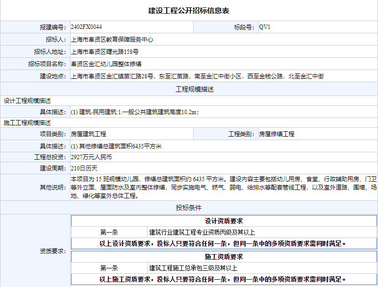 ->奉賢區(qū)金匯幼兒園整體修繕招標(biāo)公告