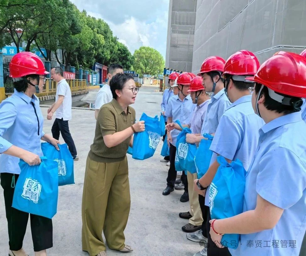 盛夏已至,熱浪如涌。為切實做好防暑降溫工作,近日,區(qū)國資委黨委副書記、副主任劉忠平,黨委委員、副主任張瑛帶隊到奉賢中學生活區(qū)遷建工程項目進行高溫慰問,為他們送去防暑降溫生活用品。慰問現(xiàn)場,領(lǐng)導們與一線員工親切交談,詳細了解項目建設推進情況和防暑降溫措施落實情況,感謝他們在炎炎夏日里的辛勤付出與默默奉獻,并叮囑大家要合理安排作息時間,注意勞逸結(jié)合,切實保障高溫天氣下安全施工。