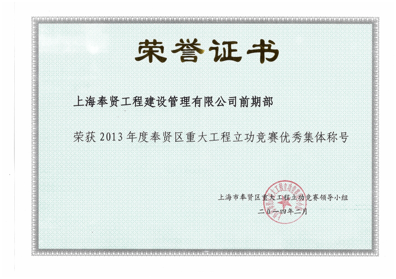 ->我公司前期部榮獲奉賢區(qū)重大工程立功競賽優(yōu)秀集體稱號(hào)_