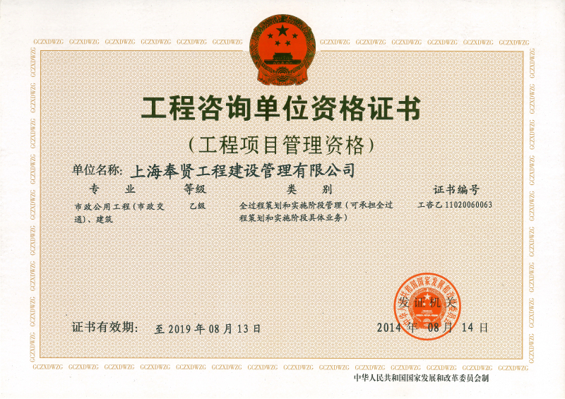 我公司獲得工程咨詢單位項(xiàng)目管理乙級資格證書_