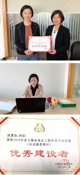 劉寒紅榮獲2019年度上海市重點工程實事立功競賽(市交通委賽區(qū))優(yōu)秀建設者。