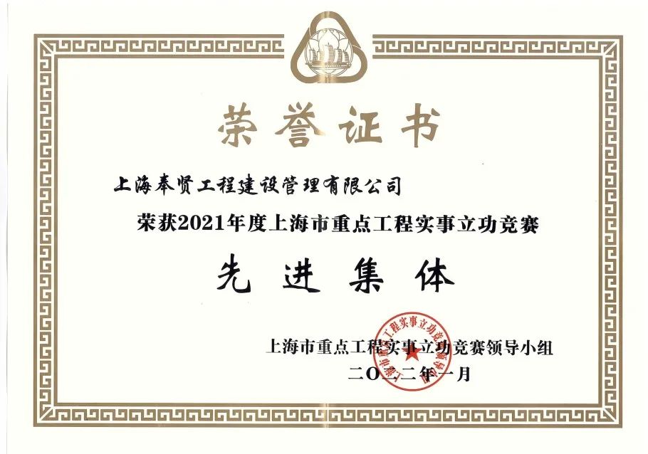 【喜訊】公司榮獲2021年度上海市重點(diǎn)工程實(shí)事立功競(jìng)賽先進(jìn)集體_
